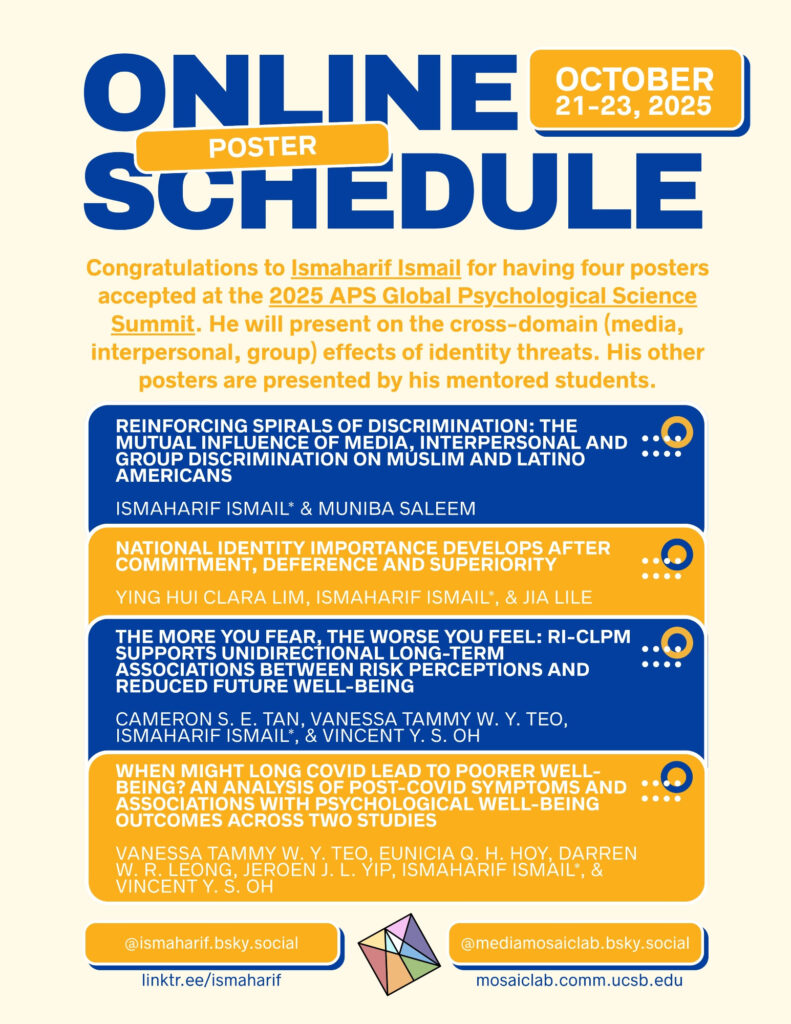 Ismaharif Ismail on having 4 posters accepted at the 2025 Association for Psychological Science (APS) Global Psychological Science Summit!