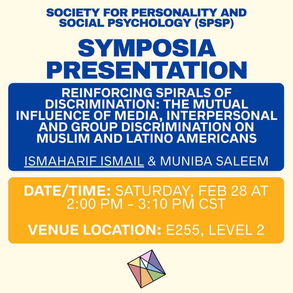 Media MOSAIC Lab member Ismaharif Ismail will be presenting at the Society for Social and Personality Psychology (SPSP) 2026 conference!